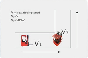 5、彎道控制技術(shù):叉車轉(zhuǎn)彎時,彎道控制技術(shù)會自動降低叉車行駛速度,將動態(tài)穩(wěn)定安全系統(tǒng)與重心極低的特點結(jié)合,有效保護貨物和操作員的安全。