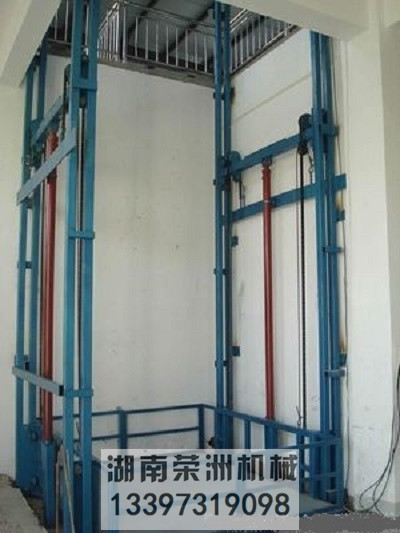 導軌式液壓貨梯:貨物提升機主要用各種工作層間貨物上下運送;立體車庫和地下車庫二層以上高樓間、無法開挖地坑場所、頂層高度不能到達要求的場合等比較難解決的狹小空間,