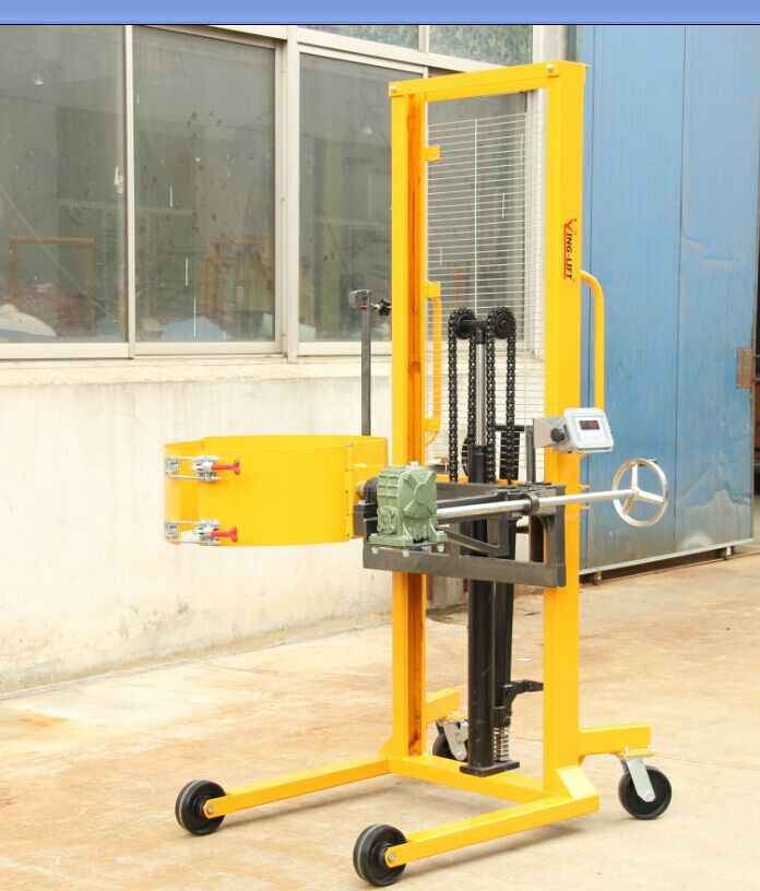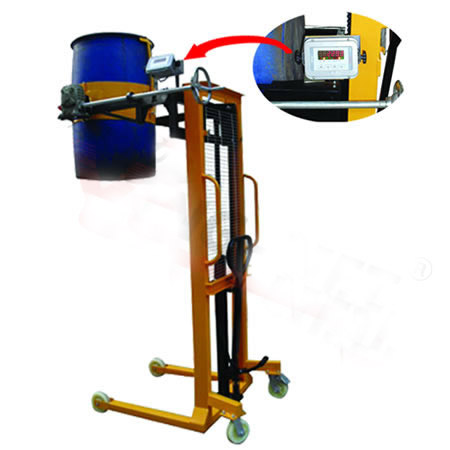 ★帶電子秤稱重式液壓油桶搬運裝卸倒料車,有置零、 去皮、稱重功能,精確度可達(dá)到±100克。